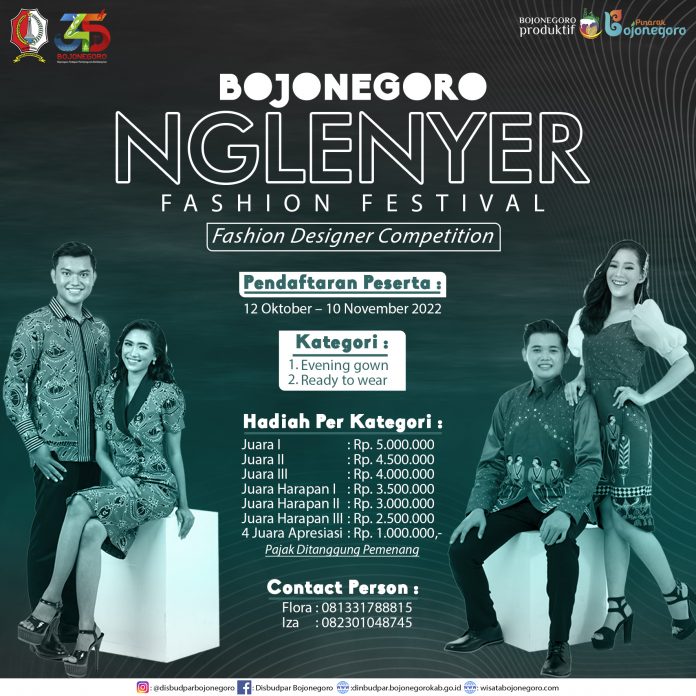 Memanggil desainer muda Bojonegoro di bidang fesyen untuk berkontribusi karya melalui Bojonegoro Nglenyer Fashion Festival “Fashion Designer Competition” batik/tenun Bojonegoro. Mari kita Buktikan dan Tunjukkan Karya Terbaik.
